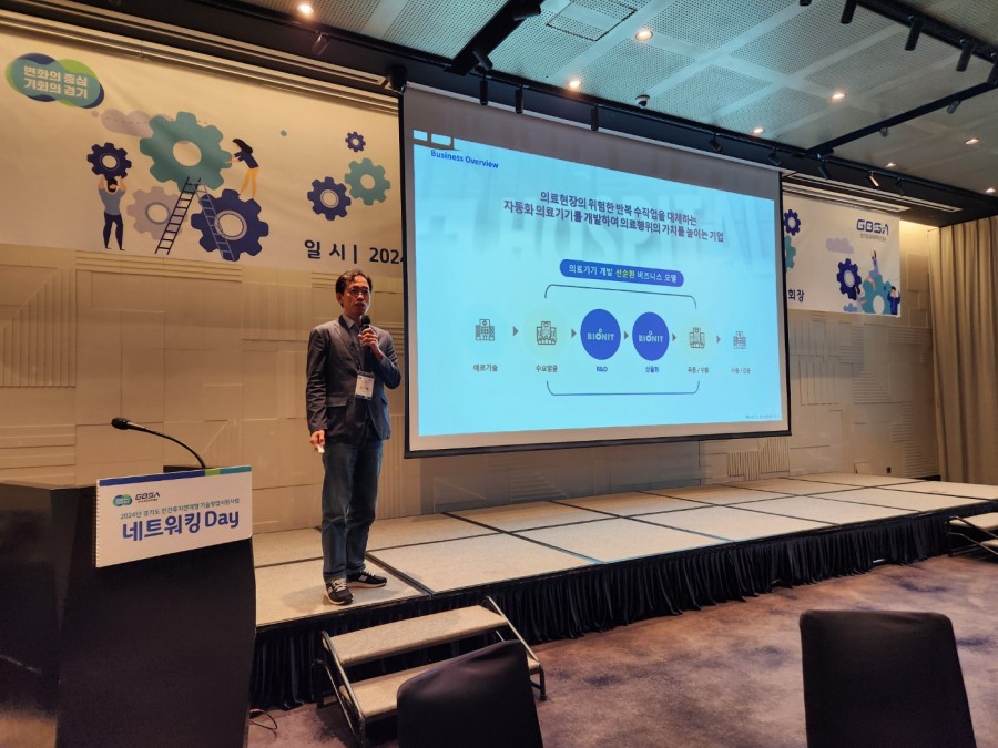 ㈜바이오니트 김찬봉 대표는 2024 10 30일에 그래비티 서울 판교 지하 1층 연회장에서 개최된 2024년 경기도「민간투자연계형 기술창업지원」사업 네트워킹 Day에 참여하여 ㈜바이오니트에서 개발을 진행하고 있는 WellPrep 시스템에 대하여 발표하였다. ㈜바이오니트는 2024년 경기도「민간투자연계형 기술창업지원」사업의 대상자로 선정되었으며, 중간평가에서 최우수 기업으로 선정되었다. 본 네트워킹 Day에서는 10개의 기업이 참여하였다.