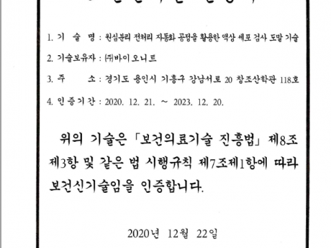 Bionit Inc was certified as a new health technology (NET No. 177) by the Ministry of Health and Welfare on December 22,...